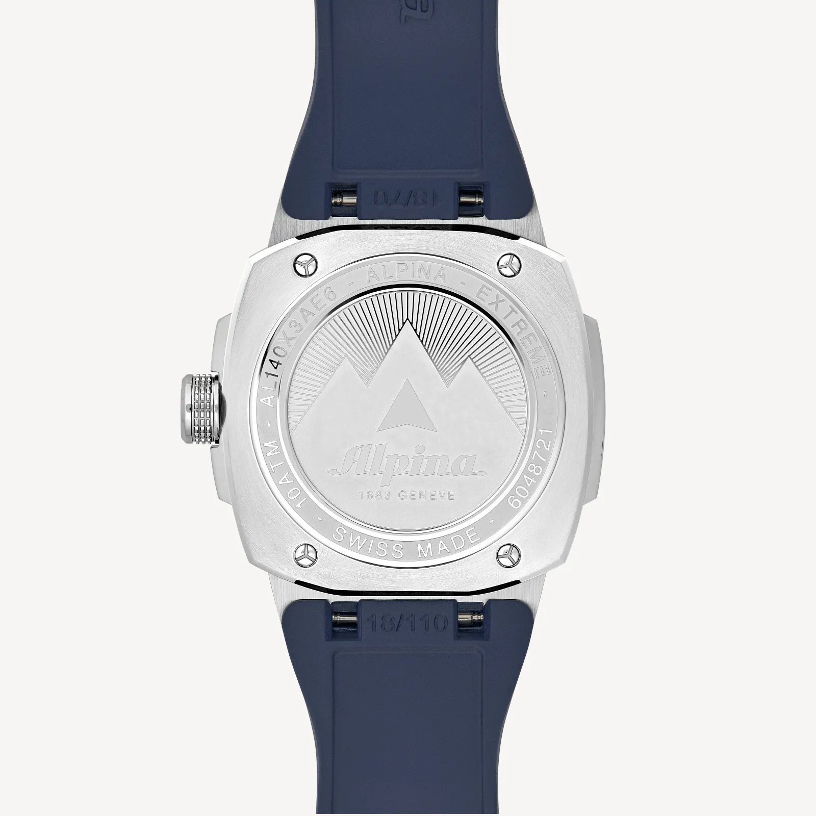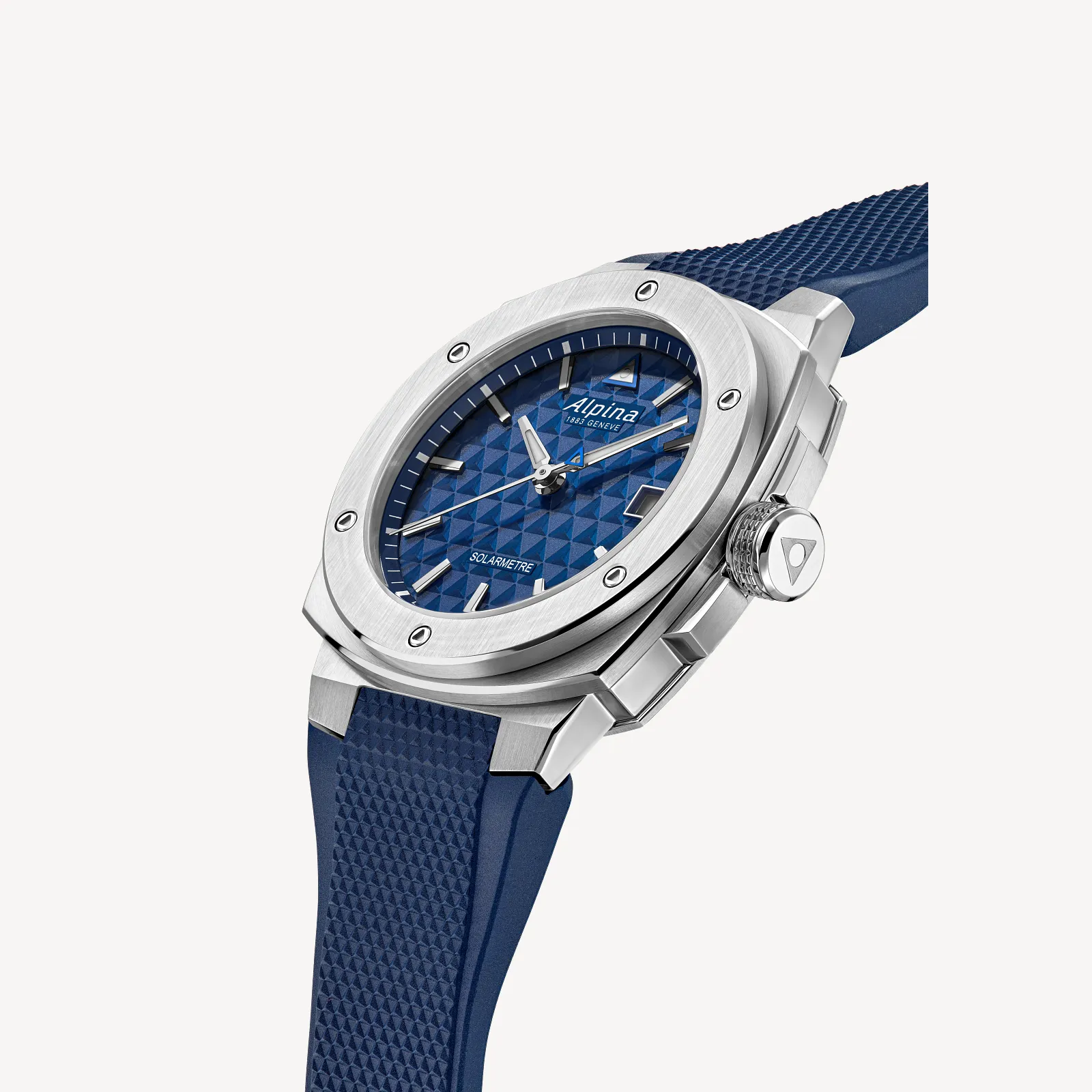Built for total freedom, the Alpiner Extreme Solarmetre is the first solar-powered watch from Alpina. Melding sporty style, technical innovation and unwavering reliability, offered in a 37.5mm stainless steel case with the AL-140 solar quartz caliber with an exceptional power reserve of 10 months without exposure to light. A navy blue dial is paired with a matching navy textured rubber strap.