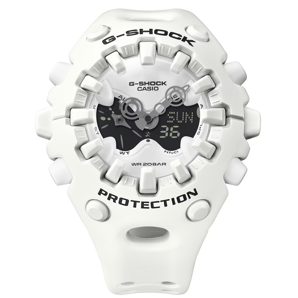 The GAV01 brings together organic exterior form and sharp-edged components, combining these with a large, full-screen LCD, the newly developed Shock Release Hand and other innovative ideas reflecting the G-SHOCK identity of toughness.