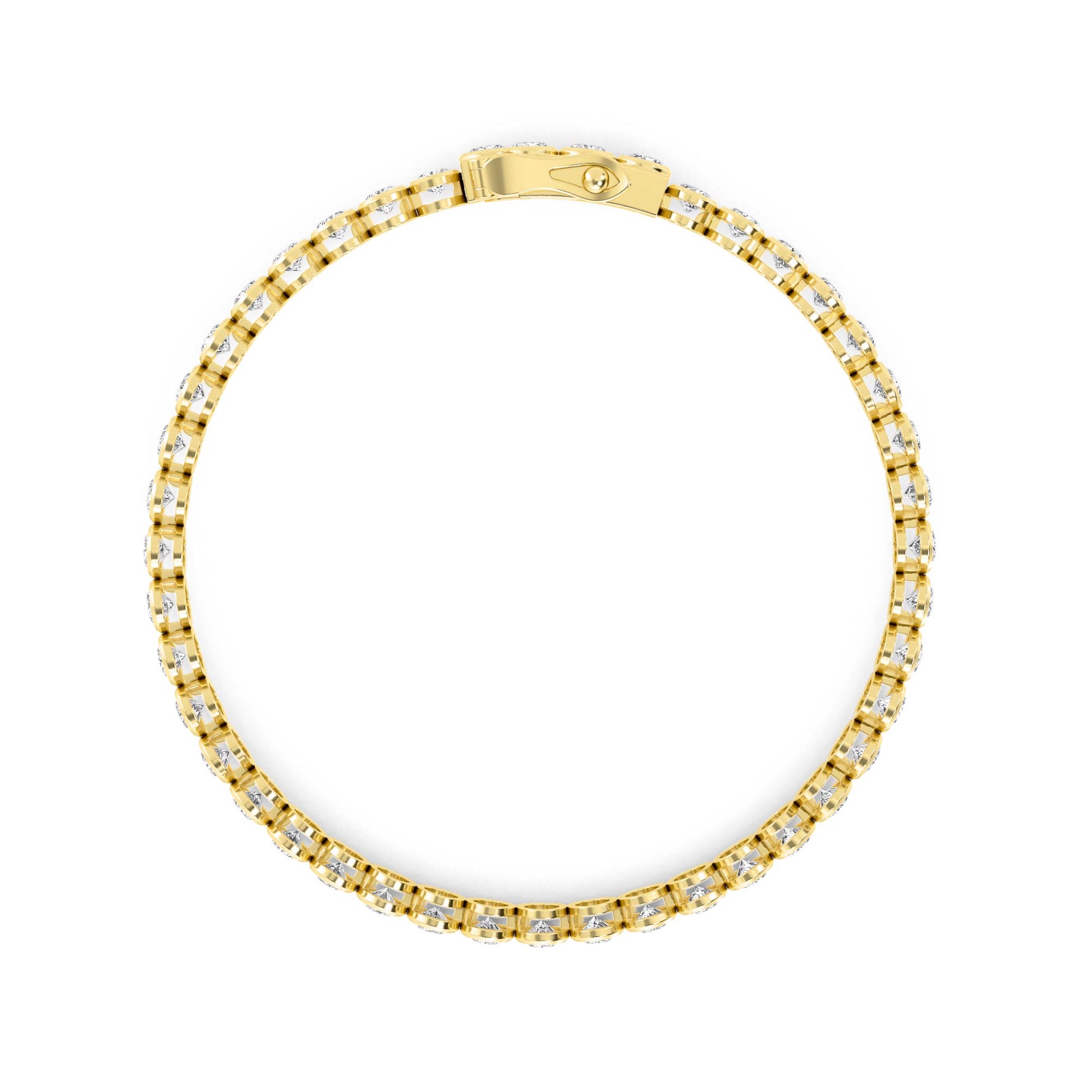Own bold style with this tennis bracelet, featuring 40 oval-cut lab-grown diamonds totaling 10.57ctw for fierce brilliance. Set in sleek bezel settings within 14K yellow gold, this 7-inch design radiates modern edge.
