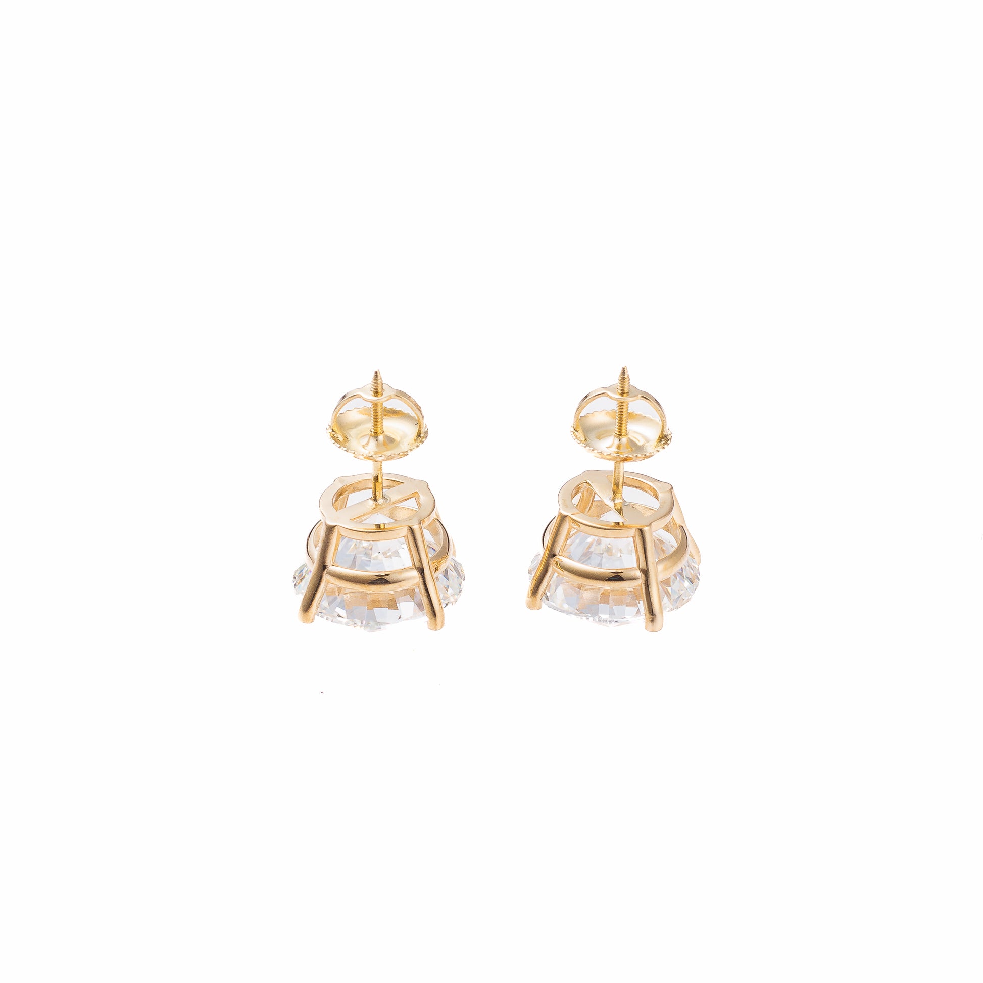 Define luxury with these stud earrings, showcasing 10.00ct round lab-grown diamonds that blaze with unmatched clarity. Set in four-prong 14K yellow gold, this IGI-certified pair merges minimalist design with responsibly sourced boldness.