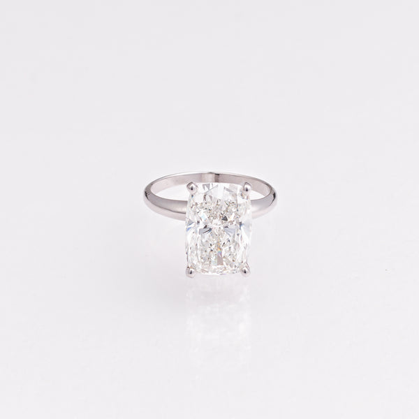 Own the moment with this engagement ring, featuring a 5.32ct cushion brilliant lab-grown diamond (F, VVS2) that cuts through with fearless sparkle. Set in crisp 14K white gold, this IGI-certified ring merges minimalist edge with responsibly sourced luxury.