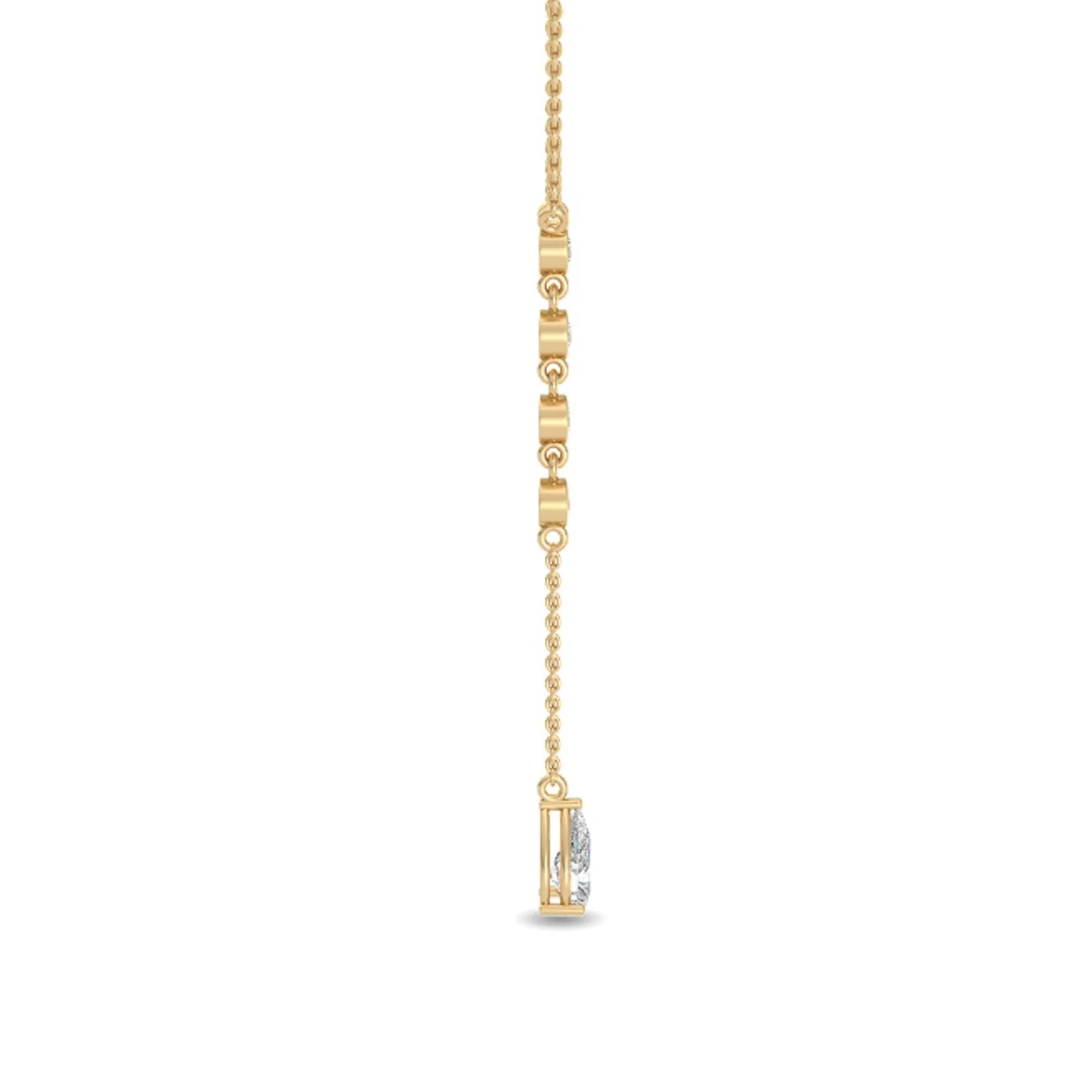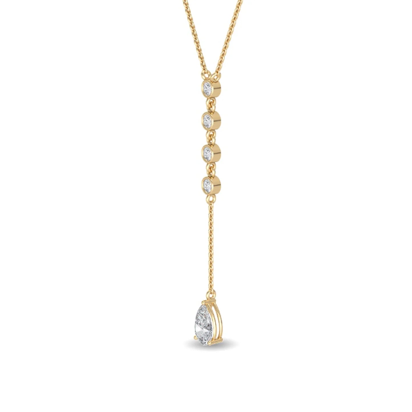 This refined lariat silhouette features a graceful cascade of pear and round lab-grown diamonds totaling 0.75ct, each stone thoughtfully placed to create soft movement and light-catching brilliance with every step.
