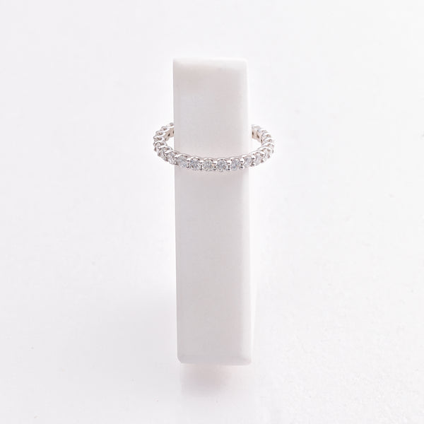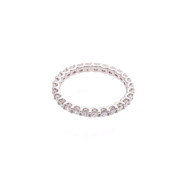 The Round U-Setting Eternity Band 1.09ct is a radiant and timeless wedding or anniversary ring, meticulously crafted in 14kt white gold. This exquisite band features a continuous circle of round brilliant-cut diamonds, totaling 1.09 carats, each set in a distinctive U-shaped prong setting that enhances light capture for maximum sparkle. The diamonds, graded G-H in color and VS in clarity, offer exceptional brilliance and fire, creating a seamless band of light that symbolizes everlasting love. Ideal for stacking with an engagement ring or wearing as a standalone piece, this band combines elegance and durability. Handcrafted for a comfortable fit, it is available in standard ring sizes with options for customization to ensure a perfect, personalized fit.