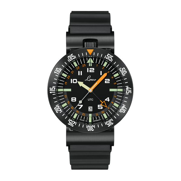 Dial: Black mat, indexes with luminous material Superluminova C3, white minute track, numbers 1 - 23 for second time zone printed in orange