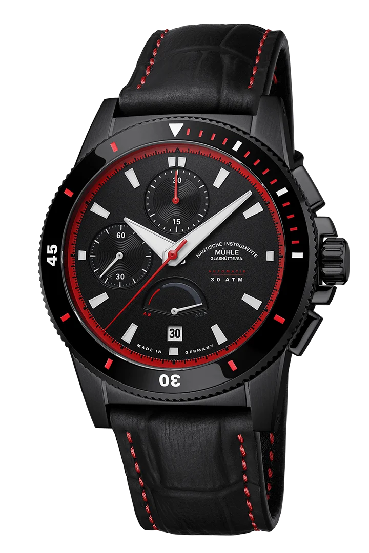 Powerful design. High-performance movement. At Mühle-Glashütte, true power means precision, robustness and optimal readability. But the new Sportivo Power Chronograph takes it even further. It impresses not only with its bold black-red design but also with the second modular movement, MU 9424-GR. The perfect companion for those who tackle professional challenges with strength and endurance - and seek athletic challenges as the perfect balance.