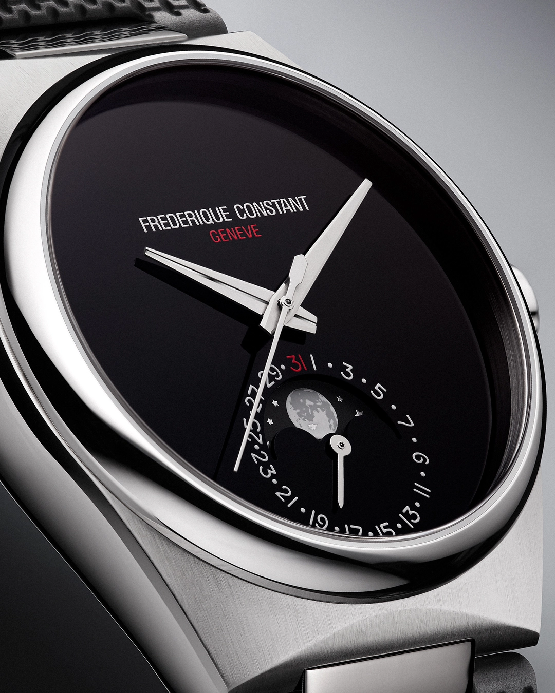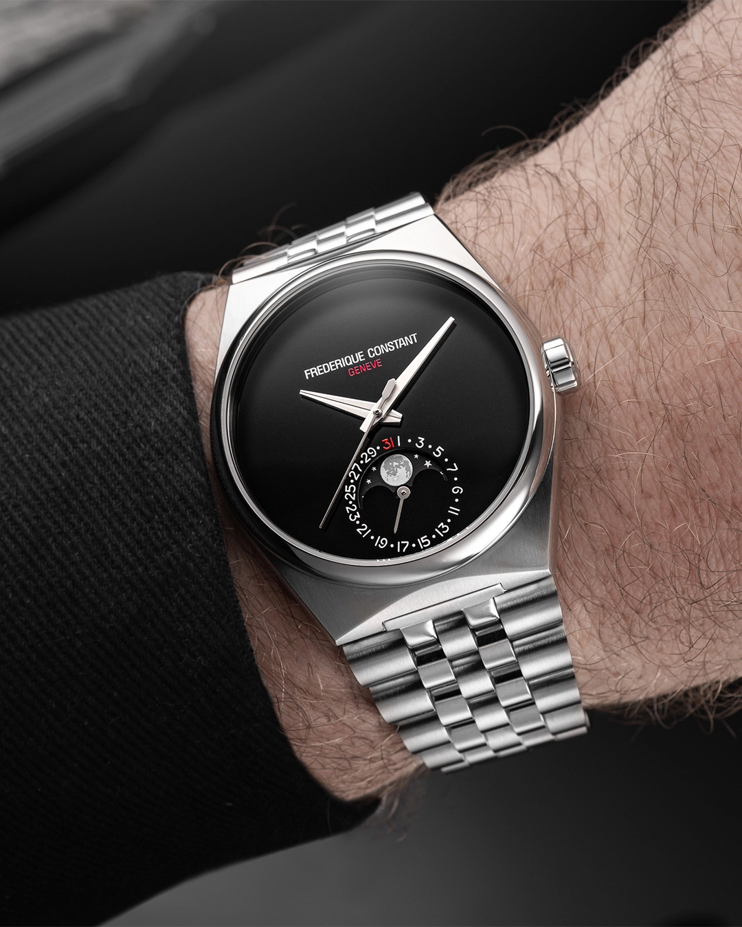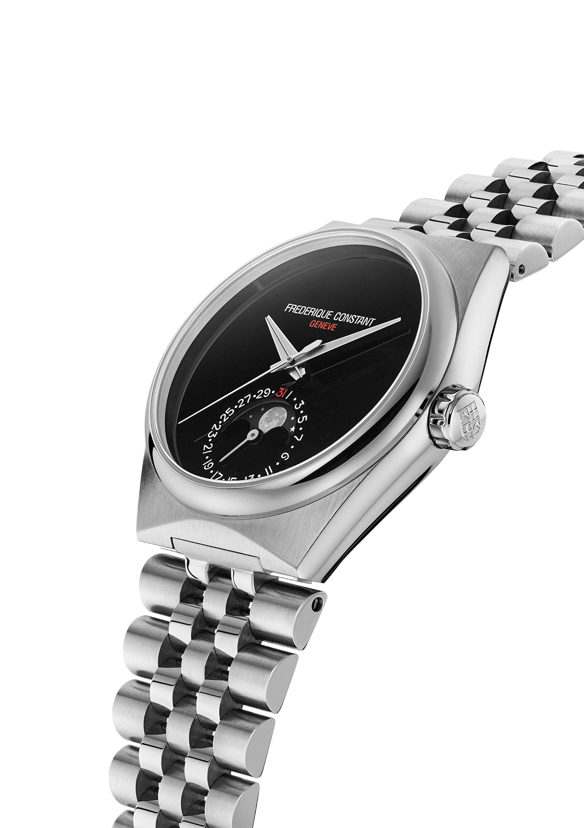 Frederique Constant and Time & Tide are proud to unveil a limited-edition collaboration, the Highlife Moonphase Date Manufacture - Onyx Moon. This piece embodies the shared values of creativity, accessibility, and entrepreneurial spirit. Limited to just 100 pieces for the world, the Onyx Moon is a reinvention of the celebrated Highlife collection. It marks several "firsts" for the collection, notably the integration of a Manufacture moon phase, a five-link integrated bracelet, and the complete absence of indices on the dial. It is a true miniature nocturnal theatre, rich in detail, capturing the theatricality of a starry night.
