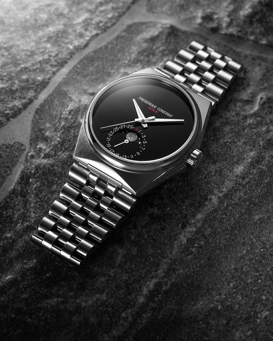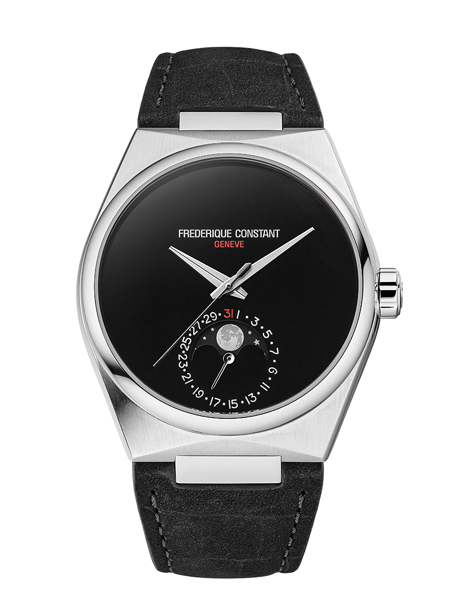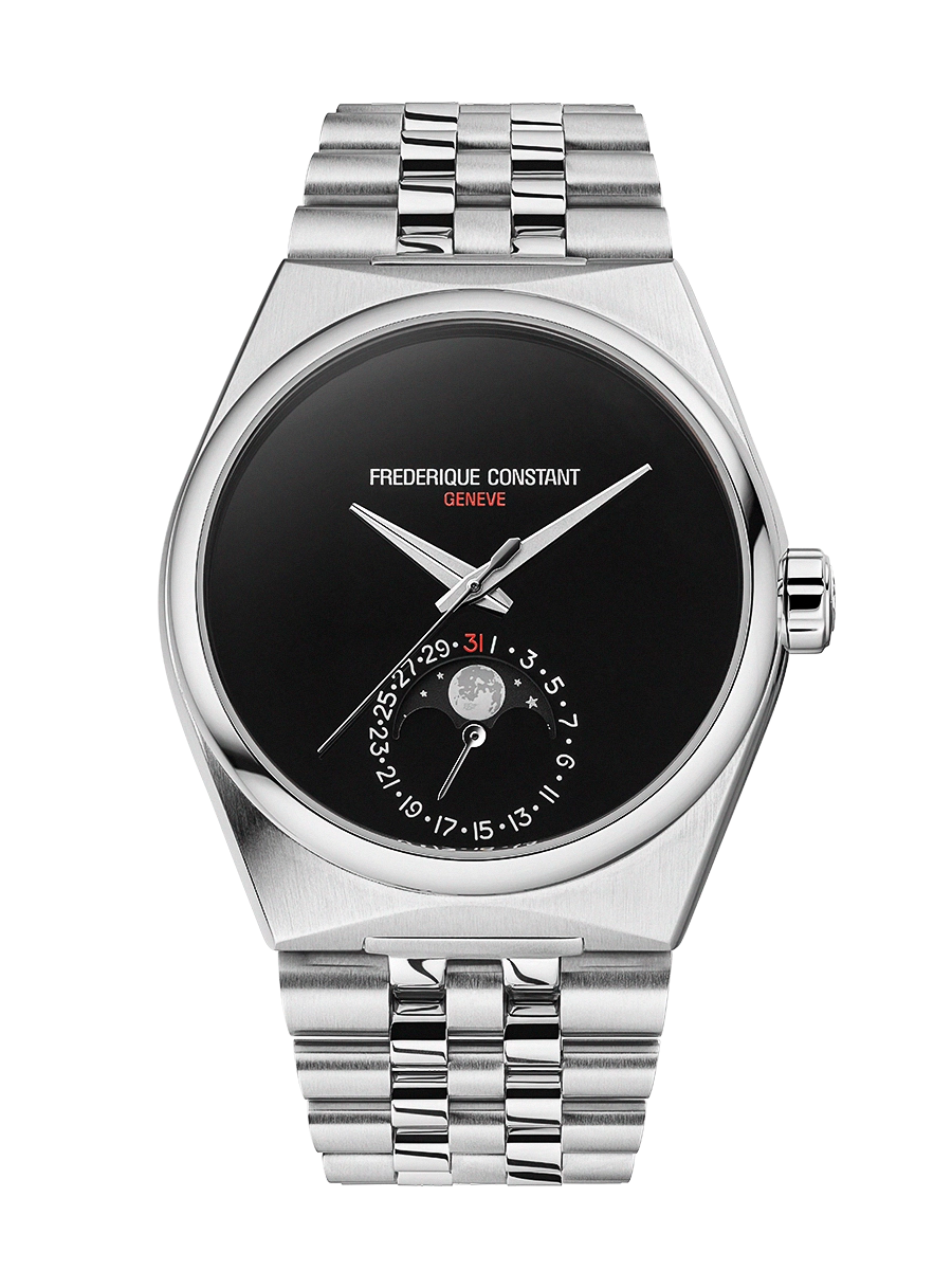 Frederique Constant and Time & Tide are proud to unveil a limited-edition collaboration, the Highlife Moonphase Date Manufacture - Onyx Moon. This piece embodies the shared values of creativity, accessibility, and entrepreneurial spirit. Limited to just 100 pieces for the world, the Onyx Moon is a reinvention of the celebrated Highlife collection. It marks several "firsts" for the collection, notably the integration of a Manufacture moon phase, a five-link integrated bracelet, and the complete absence of indices on the dial. It is a true miniature nocturnal theatre, rich in detail, capturing the theatricality of a starry night.