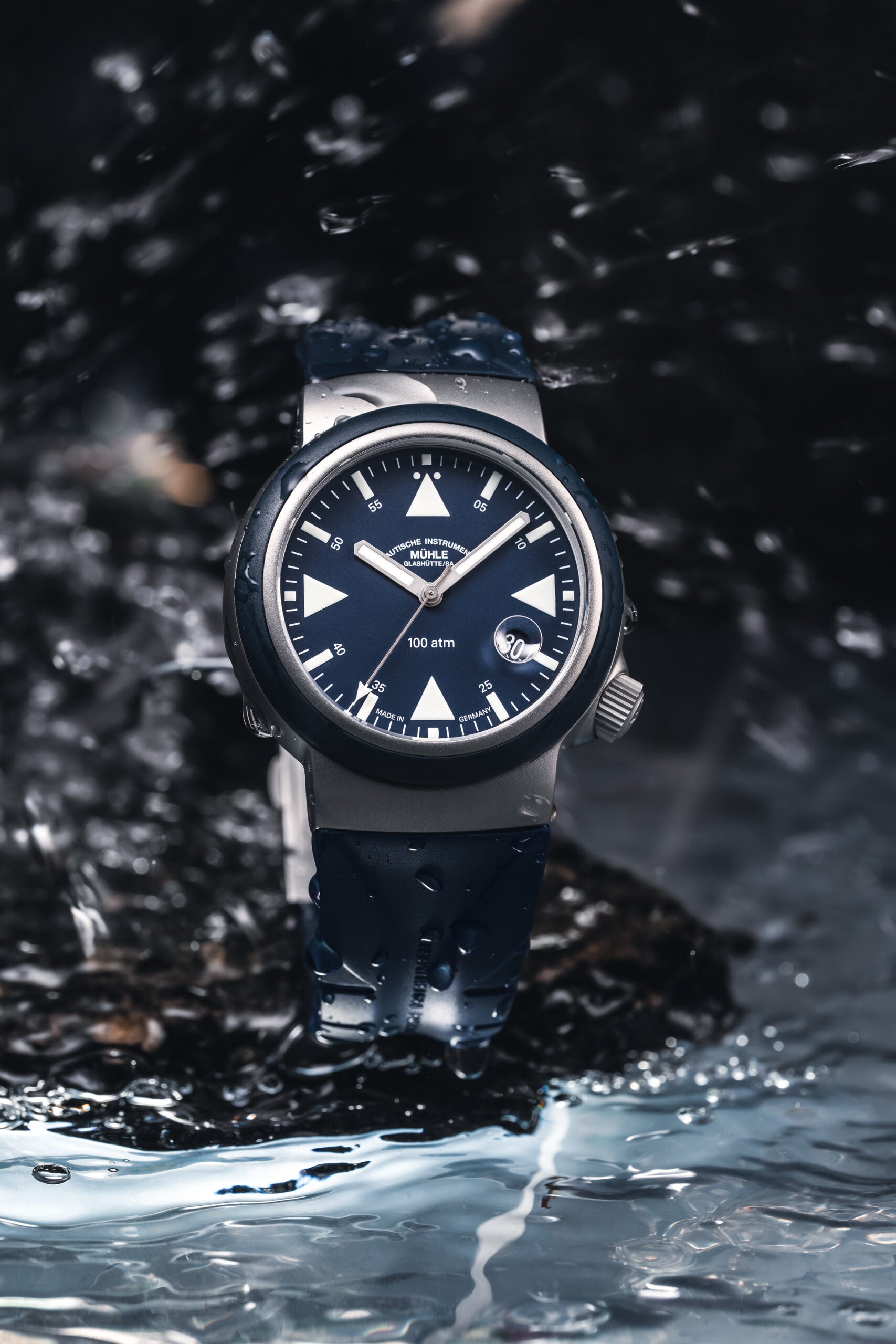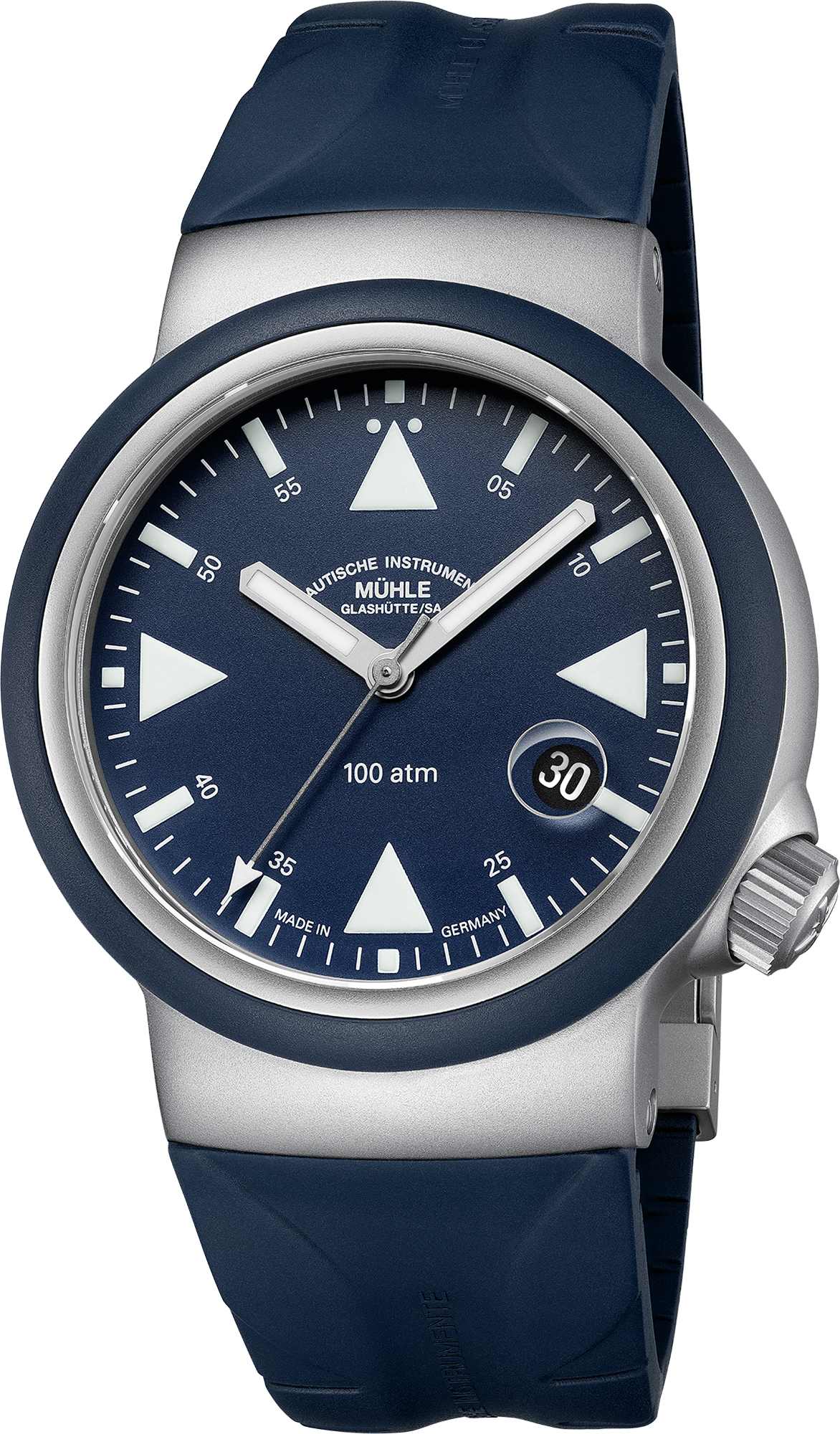 The Mühle Glashütte M1-41-02-KB-II S.A.R. Rescue Timer is engineered for professional rescue operations and serious collectors alike. Featuring a robust 42mm stainless steel case with rubber bezel and non-reflective sapphire crystal, this watch withstands extreme conditions with 100-bar water resistance. The captivating nautical blue dial pairs with luminous hands and indices for visibility in any environment. Powered by the precision SW 200-1 automatic movement with Woodpecker neck regulation, it maintains a 41-hour power reserve. The screw-down crown ensures secure sealing, while the quick-correction date function adds practical convenience. Available with metal bracelet or rubber strap—built for adventure and refined enough for everyday wear.