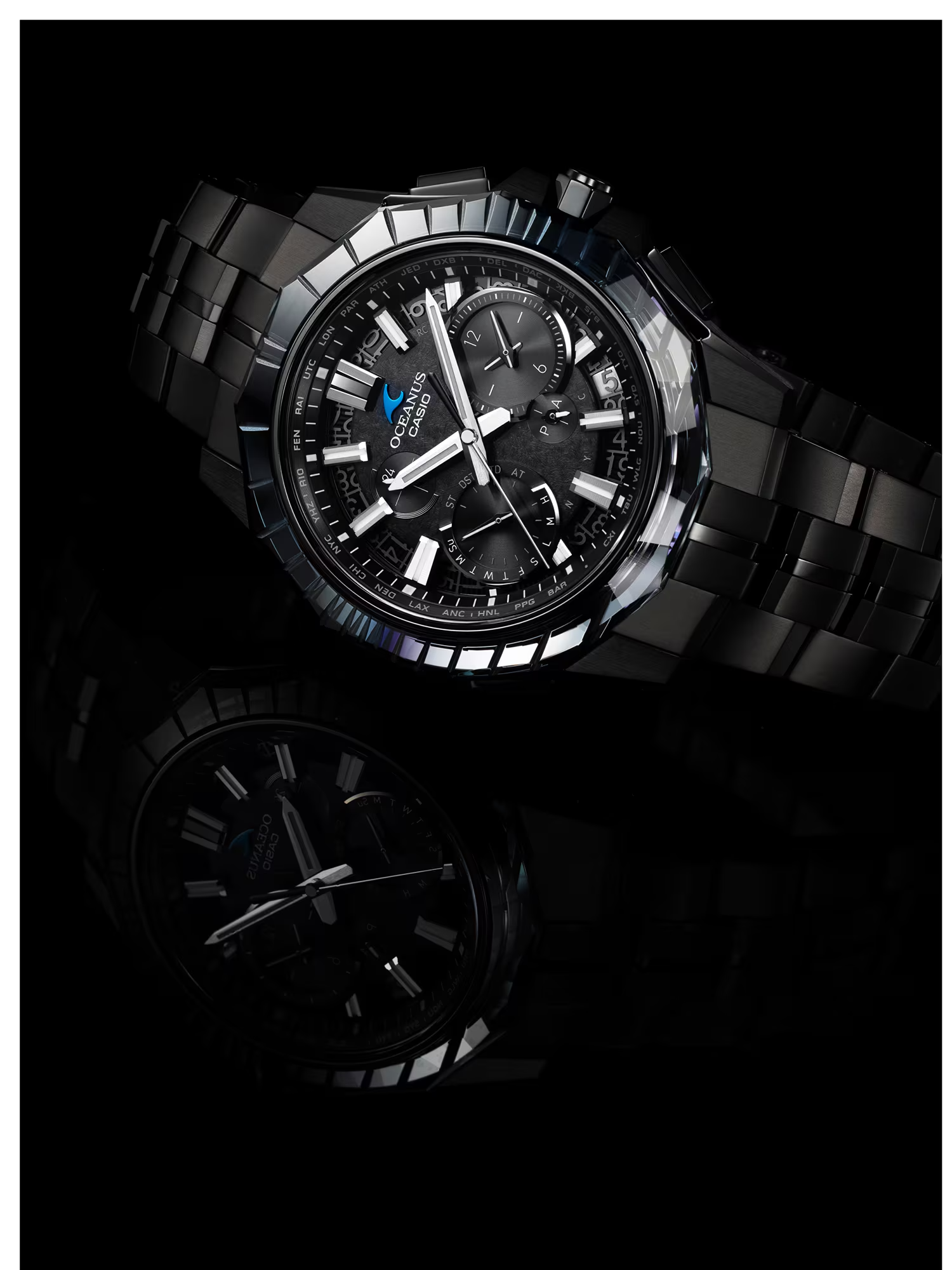 This limited-edition model from the OCEANUS Manta line features Gallium Tough Solar technology. It features a sapphire glass bezel with hand-cut lines by Edo Kiriko artisans. The design theme is "CALM NIGHT." The moonlit night sea is expressed through the DLC-treated titanium exterior and Edo Kiriko sapphire glass bezel. Edo Kiriko, which involves uniformly cutting the width and depth of hard sapphire glass, requires a high level of skill. Each cut is individually handcrafted, resulting in the unique sparkle and sharp beauty of Edo Kiriko. The watch also features a textured metal dial embossed with a motif of the unevenness and shadows of the moon's surface. Equipped with Gallium Tough Solar technology, which dramatically improves power generation efficiency, the unique face design and metal dial enhance the watch's texture. [Third Generation Hideishi Toru Horiguchi] Born in Tokyo in 1976. With his grandfather being an Edo Kiriko craftsman, he studied Edo Kiriko under the second-generation Hideishi (Suda Tomio, Koto Ward Intangible Cultural Property). In 2008, he founded Horiguchi Kiriko Co., Ltd. as the third-generation Hideishi. He is certified as a Japanese traditional craftsman (Edo Kiriko). He believes in creating innovative and modern products while inheriting traditional methods and styles.