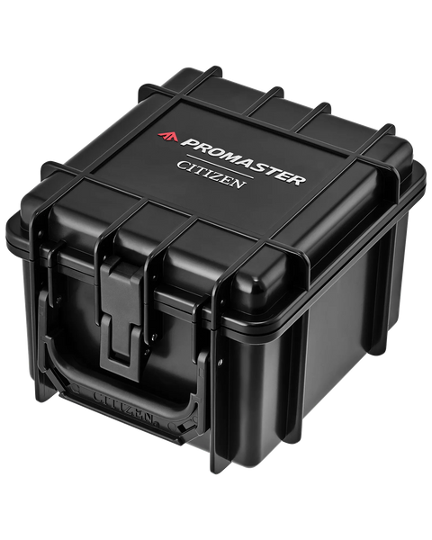 Citizen Eco-Drive Promaster Professional Diver is used for mixed gas diving with its 6mm non-reflective curved crystal, ratcheted elapsed-time bezel, screw-back case & screw-down crown, and reinforced urethane band and extender, with a carrying case for the wetsuit strap extension. Crafted in stainless steel with luminous accents, and 300M WR. Featuring our Eco-Drive technology - powered by light, any light. Never needs a battery. Caliber number B873.
