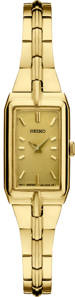 From the Essentials Collection. Inspired by jewelry design, this elegant watch is styled to be perfect for both every day and special occasions. Featuring a champagne dial with matching gold accents, this sophisticated timepiece is crafted of stainless steel with gold finish. 3 bar, 30M Water Resistant