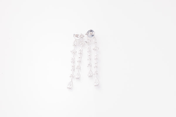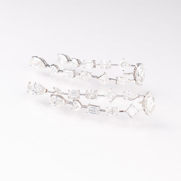 Each stone is meticulously set to highlight its brilliance and individuality, while the cascading design creates graceful movement and sparkle. Sophisticated yet modern, these earrings are perfect for black-tie occasions, weddings, or making any evening unforgettable.