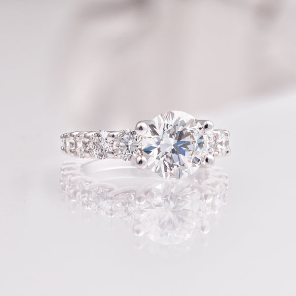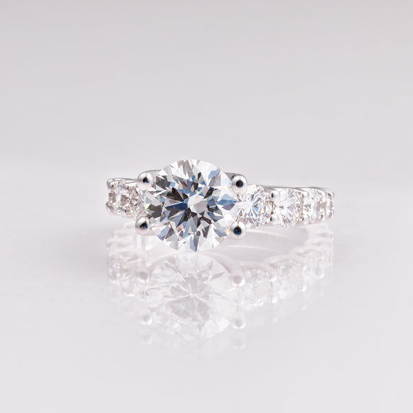 Center Stone: Round 3.00ct, E Color, VVS2 Clarity