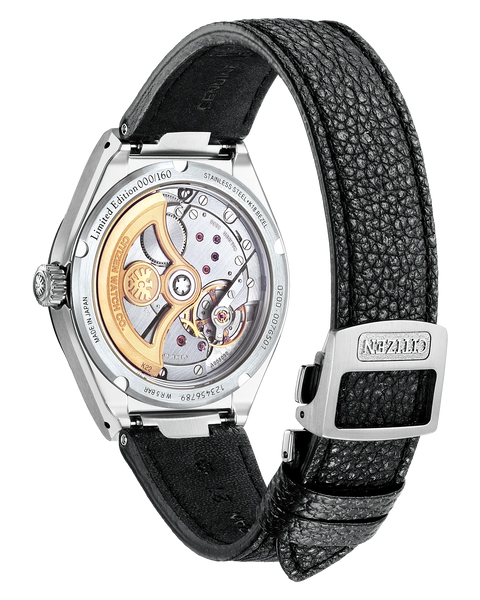 Inside the timepiece is the Citizen Caliber 0200, a refined automatic movement accurate to +5/-3 seconds per day and capable of a 60-hour power reserve. The Caliber 0200 combines accuracy in excess of the chronometer standard, and the 22-carat gold rotor is stamped with the signature eagle mark, subtly visible through the see-through case back. Crafted meticulously with an irresistible aesthetic allure, this edition is complete with fine finishes applied to every single component. Water resistant to 50 meters.