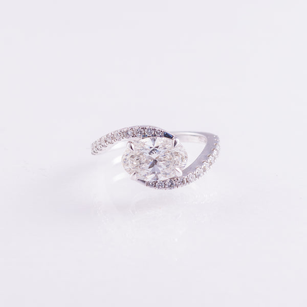 Modern, playful, and luminous, this East-West oval diamond ring is made to be noticed. The 2.57-carat lab-grown diamond stretches gracefully across the finger, paired with a 14k white gold pavé wave band that catches light with every movement. Effortless sparkle meets everyday luxury—designed for style that feels personal and unforgettable.
