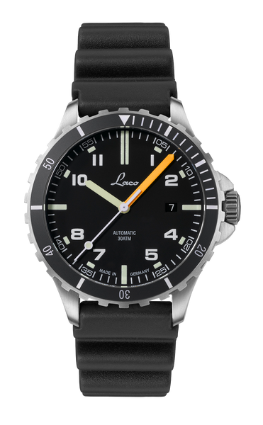 Dial: Black matte with Arabic numerals, white minute track, and luminous Superluminova-coated indexes (color matches the luminous material on case)