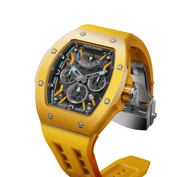 The TSAR BOMBA Atomic-Full Ceramic Edition TB8222C (Pre-Sale) is a lightweight 120 g timepiece crafted entirely from premium ceramic, featuring a 45 mm case, sapphire crystal, and water resistance up to 5 ATM. Powered by the precise Miyota 9100 movement, it offers durability, comfort, and style with multiple color options including Gray, Blue, White, Yellow, and Brown.