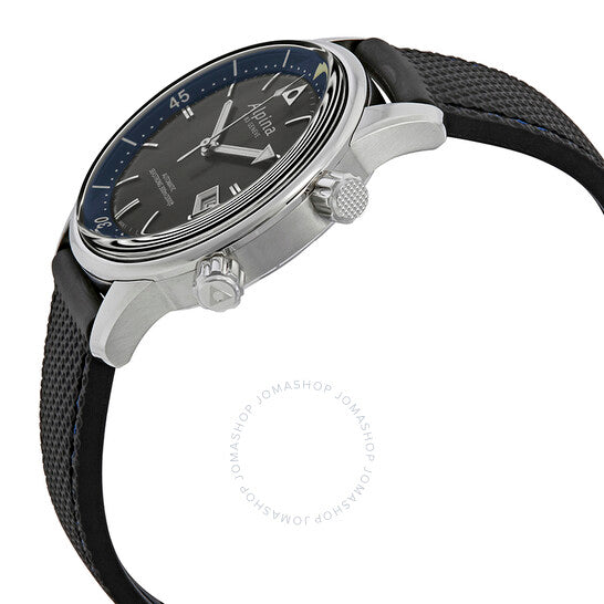 DIAL: DARK GREY WITH APPLIED SILVERED INDEXES AND NAVY BLUE TURNING DIVING RING
