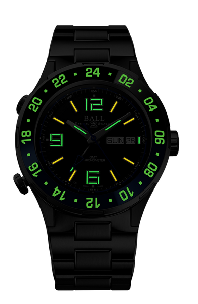 28 micro gas tubes on hour, minute and GMT hands and dial for night reading capability