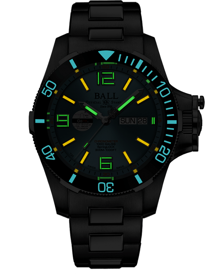 Micro Gas Tubes: 29 micro gas tubes on hour, minute and second hands and dial for night reading capability