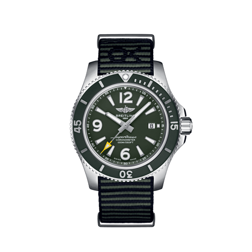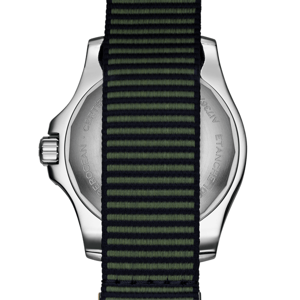Co-designed with Kelly Slater's surf wear brand, the sporty, fresh and colorful Superocean Automatic 44 Outerknown features a special ECONYL® yarn NATO strap, repurposed from nylon waste pulled out from the oceans, like fishing nets. It is up to any challenge: dive with it, surf with it or swim with it!