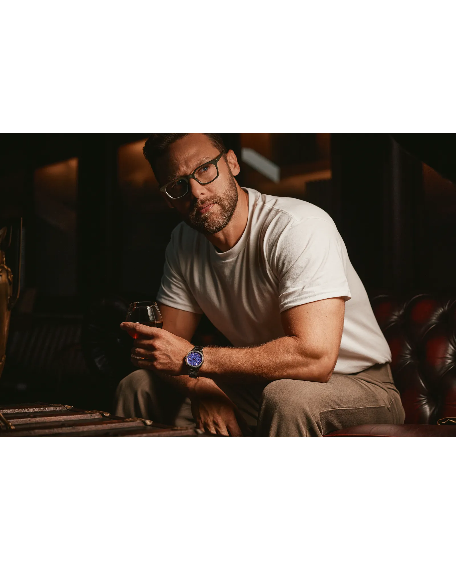 Celebrating the fascinating art of iconic singer Tony Bennett, the Bulova Men's Tony Bennett "NYC" timepiece captures the aesthetic of the artist's paintings of Central Park. The modern stainless steel case features satin and polished facets and a matching H-link bracelet for a contemporary feel and perfect fit. Standing out and evoking Bennett's brush work, the hammered texture of the rich purple dial is accented with rose gold-tone hands and indices, with a pocket square-shaped counterbalance on the seconds hand nodding to one of the singer's signature accessories. The stylish watch is powered by an automatic movement with 42 hours of power on a full wind, ensuring this Bulova men's watch will keep on time and in style, wherever you go.