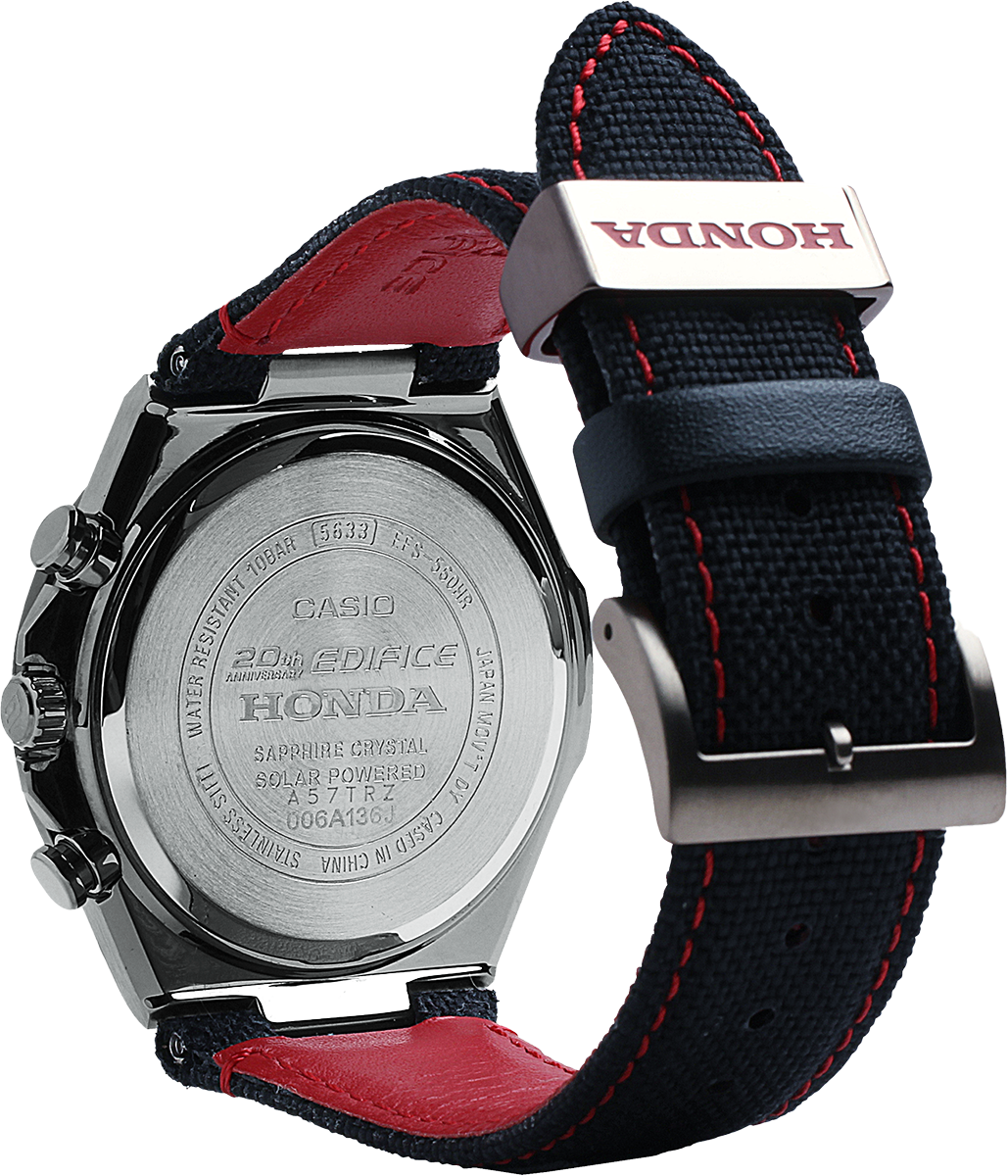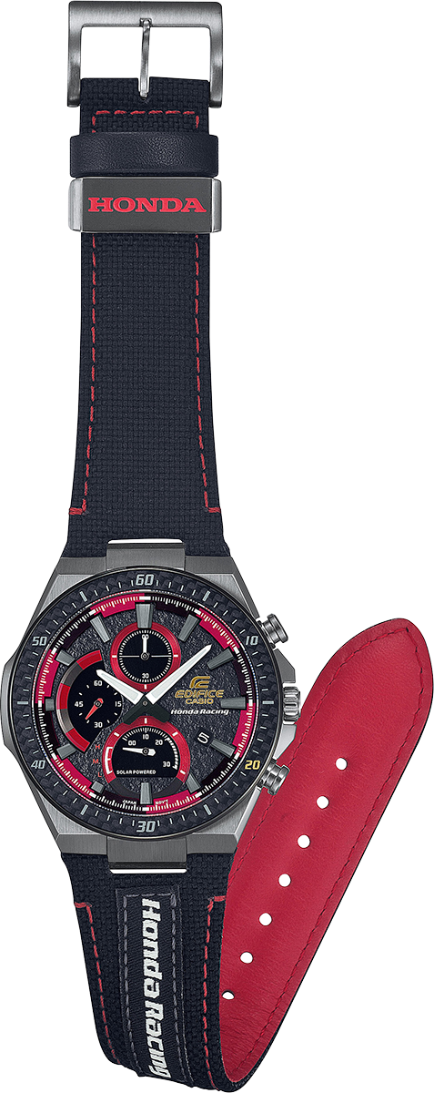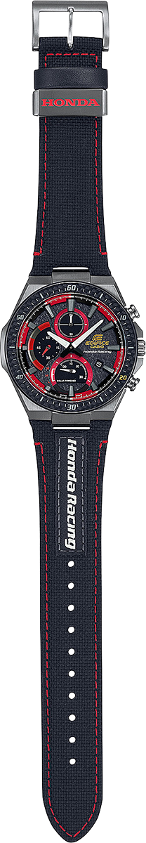 This EDIFICE Honda Racing Limited Edition model is the chronograph that lets you wear your Honda Racing support on your wrist throughout the day.