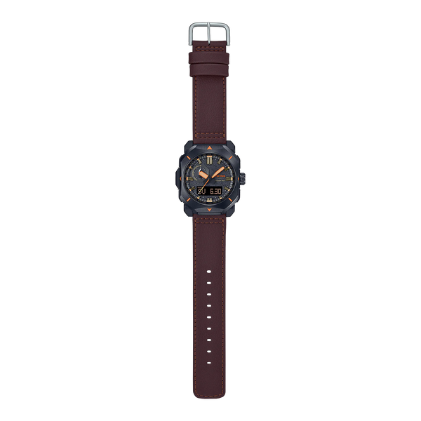 The case and resin case back are made with biomass plastics, an eco-friendly, green material, in keeping with the PRO TREK commitment to coexisting harmoniously with nature. The newly developed flame-retardant leather band of the PRW6900YL holds up even when hit by flying sparks.