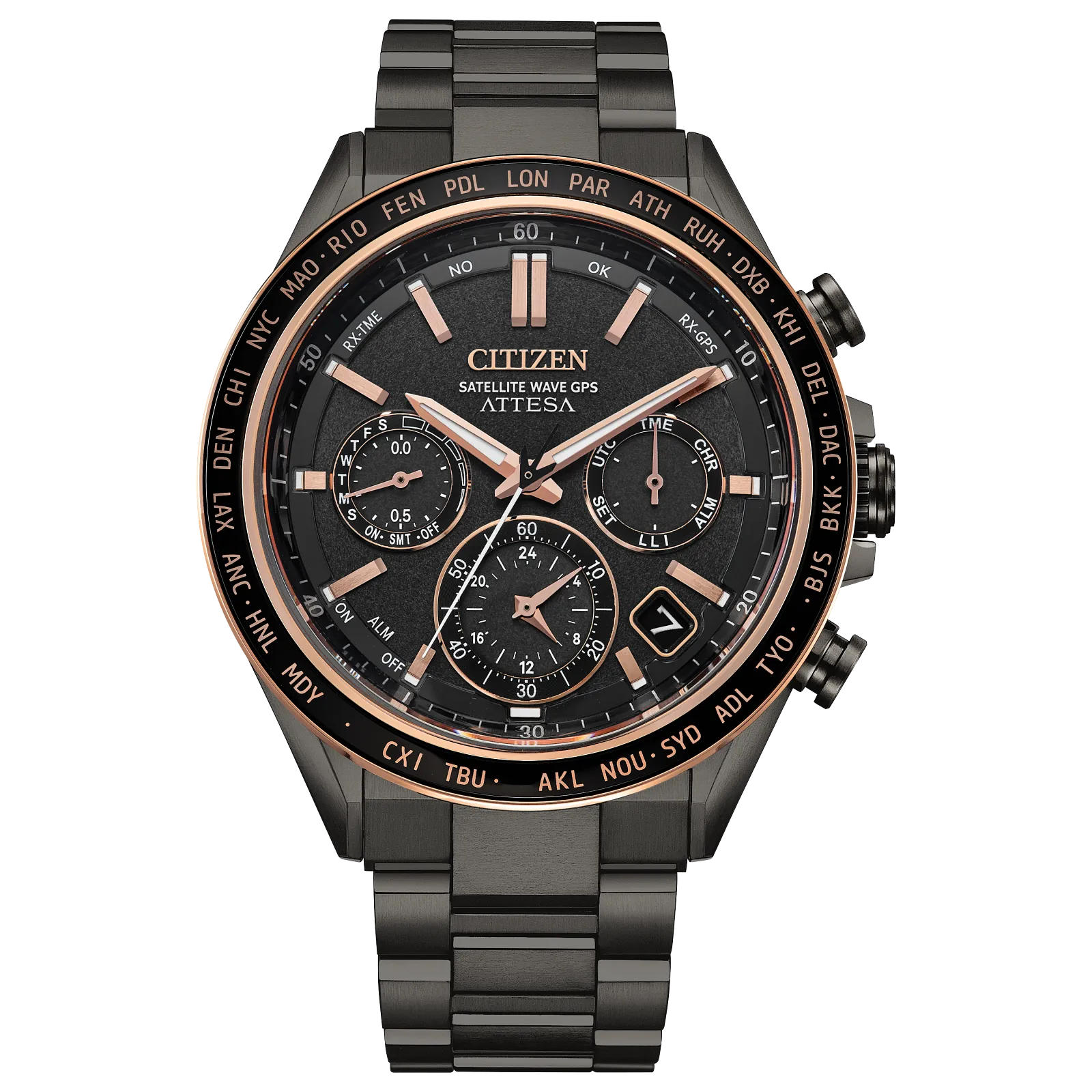 Powerful design and advanced technology drive the luxury Attesa. Since its 1987 launch, the Attesa has delivered dependable performance via expert titanium-processing know-how and innovative chronograph technology, and the latest addition to the collection is no different. A 44.6mm Super Titanium™ case and bracelet solidify the lightweight, durable construction of the timepiece, while a gray DLC colorway alongside a duo of chronograph pushers and crown guards provide a sleek and sporty touch. A world time bezel frames the brown dial and its three registers, with applied rose gold-tone accents and a date window between 4 and 5 o'clock adding dimensionality alongside utility.