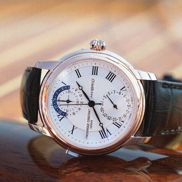 FC-750 Manufacture Hybrid caliber, automatic with date adjustable by crown and connected counter adjustable by pusher. Perlage & Circular Côtes de Genève decoration on the movement. 26 jewels, 42 hours power reserve, 28’800 alt/h. 7+ days battery life.