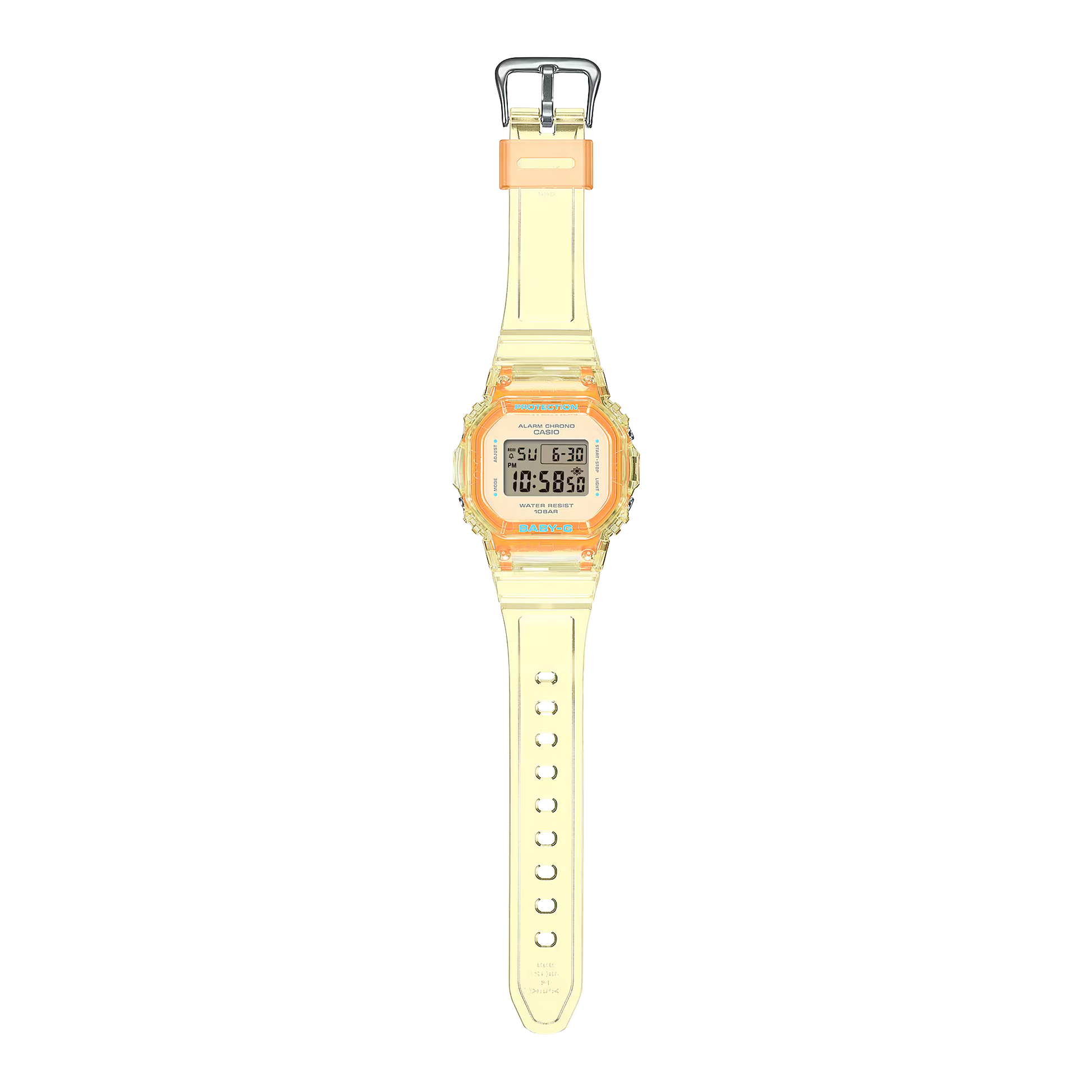 This sunny take on the compact BGD565 features the iconic bezel and band in clear resin, allowing the bright tinted resin of the center case to show through.