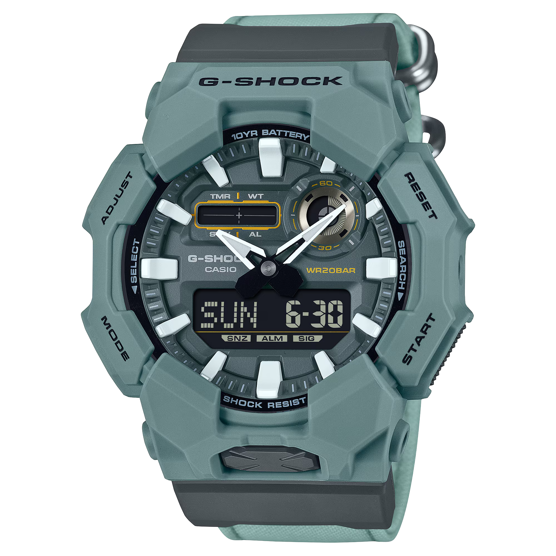 The GA-010 deliver the shock-resistance to withstand hard use and a battery that lasts for 10 years. Key resin components are made with bio-based resin, a material expected to help reduce environmental impact.