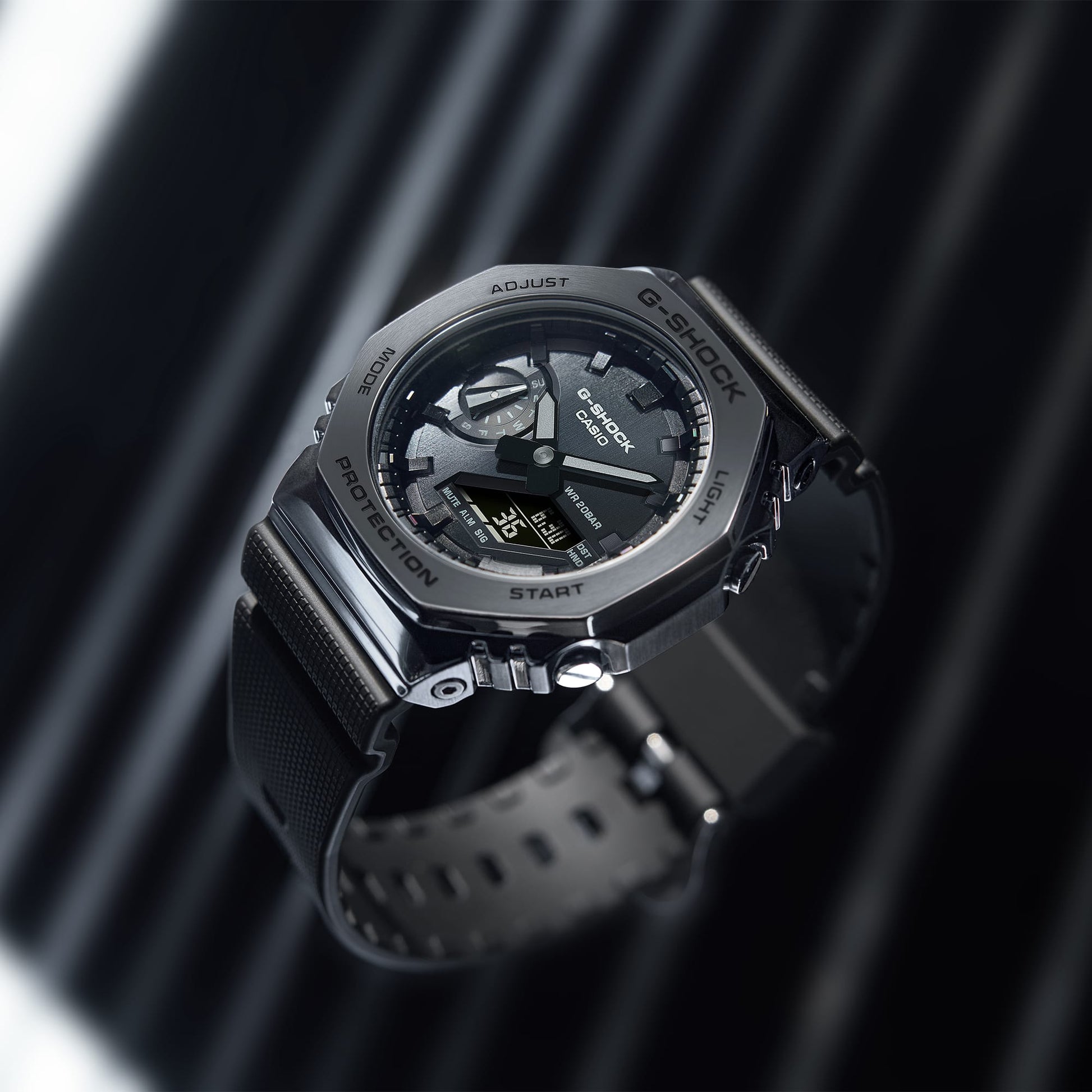 Go metal-clad in all black with a G-SHOCK that says strong, steely, and stylish.