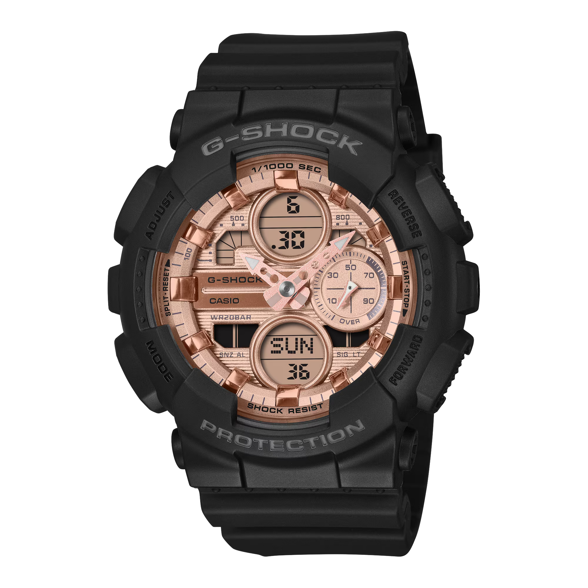 Take your love of the ever-popular analog-digital G-SHOCK look to the next level with a shimmery touch of pink gold.