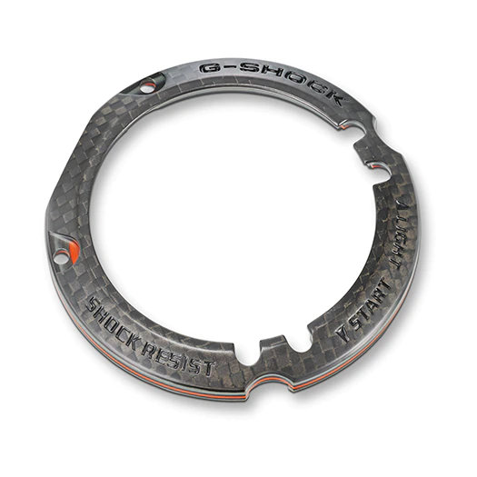 The laminated carbon bezel of the GWF-A1000XC has a single orange layer for a distinctive look. This ties in with orange dial accents that unify the overall design scheme.