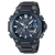 The stainless-steel top bezel and buttons are finished in blue-gray ion-plating set against a black base for two-toned sophistication. The interchangeable layered-composite band makes the timepiece lighter, while adding special textural appeal.