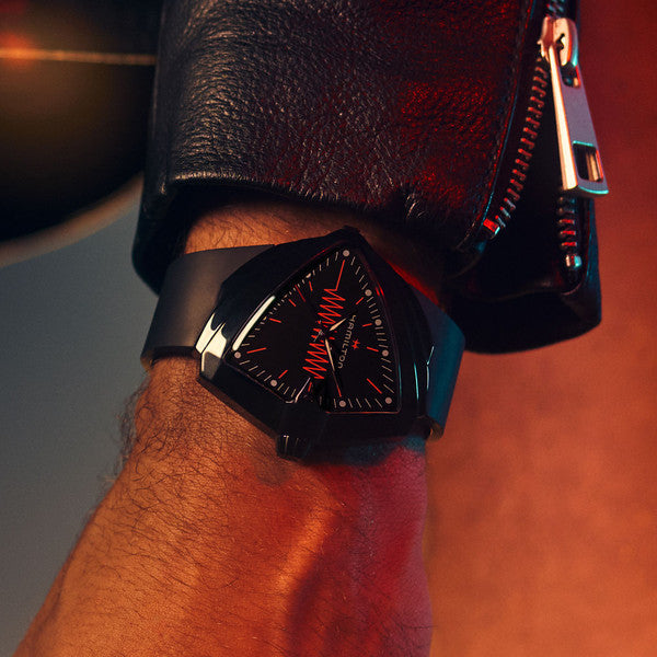 Illuminate the night with the electrifying Ventura XXL Bright and its light up dial. A symbol of innovation since 1957, the world's first battery-powered watch continues to spark conversation decades later.