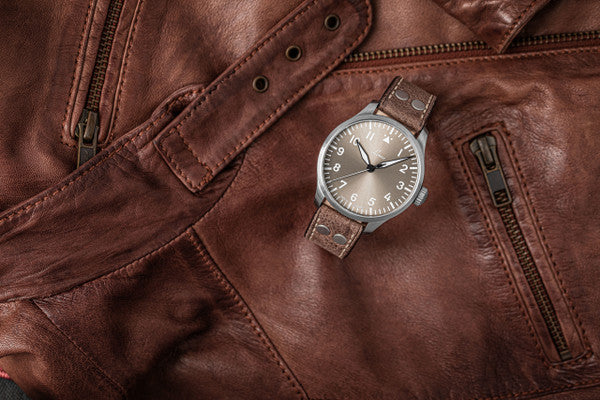 The "Augsburg Taupe" limited to 500 pieces together with the Laco "Aachen Taupe" is the new interpretation of our popular "Augsburg" pilot watch. The taupe dial is elegantly staged by the sunburst finish and lends the watch its unmistakable sporty-elegant character.