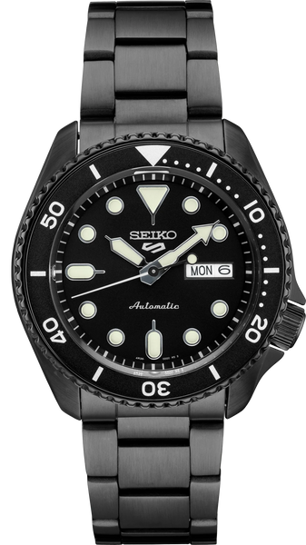 Show your style. Make your move. For over 50 years, Seiko 5 Sports has delivered consistently high levels of reliability, durability, and performance. For dependable timekeeping in your everyday life, this exceptional watch is powered by an automatic movement with a power reserve of approximately 41 hours and features a day/date calendar, LumiBrite hands and markers, and a see-through caseback. With a black ion finished stainless steel case and bracelet and a black dial framed by a black rotating bezel, this versatile watch is 100 meter water resistant- perfect for your style no matter what your day has in store.
